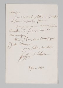 Étienne GEOFFROY SAINT-HILAIRE (1772-1844), naturaliste. L.A.S. au naturaliste, le comte Charles de Perron. 1 p. in-8. Paris, 1er février 1836. Adresse au dos avec cachets postaux.