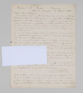Jules LICHTENSTEIN (1816-1886), naturaliste, il a travaillé sur les cochenilles et les hyménoptères et a découvert que le phylloxéra est du à un puceron. L.A.S. à l'entomologiste Henri Miot. 18 août 1884. 1 p. in-4. Papier à petits carreaux.