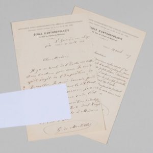 Il convie un confrère à passer le voir à l'École d'Anthropologie, au sujet de l'Exposition internationale scientifique de Bruxelles : « [] j'ai porté sur la liste de l'École d'Anthropologie, pour Bruxelles, votre tableau de petits silex. Nous nous occupons des caisses d'envoi, il est donc indispensable que nous ayons ce tableau le plus tôt possible [] ».