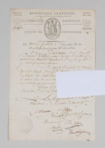 AIN. Pièce signée par les 9 membres du Comité de Sûreté Générale. 1 p. in-folio. [Paris], 3 …