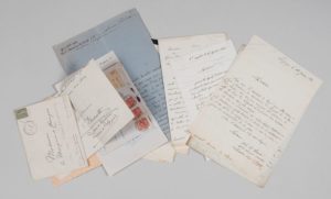 - Correspondance adressée à la marquise de Chevigné, présidente des Dames Royalistes de la Dordogne, en son château de Campagne. 9 lettres reçues par elle et 11 brouillons de réponse. Enveloppes. 1914-1921. Lettres d'Henriette Duchesse de Vendôme princesse de Belgique, de ses dames d'honneur et du secrétaire du duc d'Orléans. Ainsi que le brouillon de lettres de la marquise de Chevigné à la duchesse de Vendôme et au duc d'Orléans. Correspondance sur la ferveur royaliste en Périgord durant la première guerre mondiale, évoquant en particulier le voyage de la famille légitimiste en Périgord, en 1918.