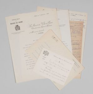- 2 lettres du maire de Reims à Maurice Bellonte, 1931 : voeux et réception à Reims des maires des villes américaines qui ont reçu Bellonte lors de sa tournée.