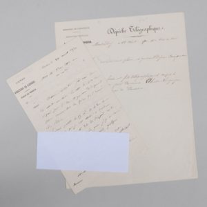 - Intéressant brouillon d'une lettre écrite de Verdun. « Je suis parti le 15 [août] à 11h du soir de Paris, et je suis arrivé à Verdun le 16 à 3h de l'après-midi. En descendant à la gare, j'y ai trouvé l'Empereur arrivé depuis quelques minutes. S.M. m'a dit d'attendre à Verdun que le mal Bazaine qui arriverait le surlendemain [] ».
