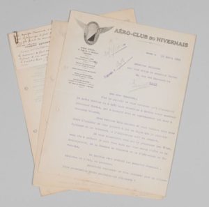 4 lettres du président de l'aéro-club du Nivernais (Pierre Leydet) à Maurice Bellonte (+ 2 doubles de réponse), 1931. Sur l'organisation du meeting aérien de Nevers où sera également présents Dieudonné Costes et Maryse Bastié. « Les Nivernais se font une joie à la pensée de vous recevoir avec Costes le 2 août à Nevers. Vous serez l'objet d'un accueil enthousiaste []. Costes viendra vraisemblablement par la voie des airs et se chargera d'amener à Nevers Monsieur Dumesnil, ministre de l'Air [] ». Il met à sa disposition 2 avions, un Farman 200 et un Farman 190