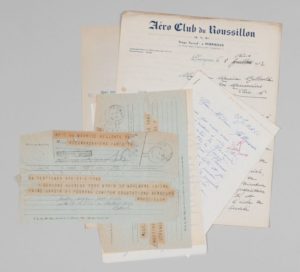2 lettres de l'aéro-club du Roussillon à Maurice Bellonte (+ un double de réponse), 1932, l'une pour une fête aérienne à Prades, l'autre pour le recrutement de la maison Potez à Perpignan + 2 télégrammes et 2 autres lettres.