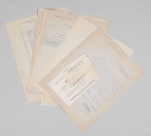 11 lettres du président de l'aéro-club du Haut-Rhin (Alfred Dreyfus) et du président du Club Aéronautique du Saudgau (Jos Kroell fils) à Maurice Bellonte (+ 10 doubles de réponse), Dannemarie et Mulhouse, 1935 + 1 carte d'invitation de l'aéro-club du Haut-Rhin à la conférence de Maurice Bellonte. Sur l'exposition aéronautique organisée à Altkirch et les conférences que Bellonte doit faire dans cette ville et à Mulhouse.
