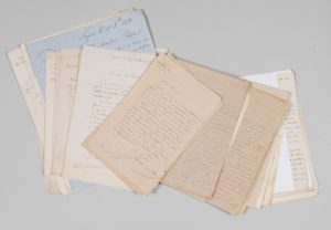 - Jean-François CHALANDE, numismate et archéologue ; et sa femme Mathilde. 6 lettres donc 5 L.A.S., rédigées par sa femme. À propos de monnaie des Princes d'Orange, de trilobites de Cabrières, et de Silex et fossiles siluriens. Chalande est chargé de la partie numismatique féodale de l'Histoire du Languedoc. Il a identifié, pour Raspail, une Saiga d'argent, d'époque mérovingienne, que le marquis de La Goy avait classé dans les « incertaines ». À propos de l'éminent archéologue et historien, Edward Barry, professeur à la faculté de Toulouse et possesseur d'une des plus belles collections de poids. Ce dernier voudrait faire l'acquisition de poids, provenant de la rive gauche du Rhône : Arles, Cavaillon, Isles Vaucluse, Avignon, Carpentras, etc. [Sa collection se trouve actuellement au Musée d'archéologie de Toulouse dit Musée Saint-Raymond, ainsi qu'au Louvre]. Barry remercie Raspail par l'intermédiaire de Chalande pour ces renseignements et pour un dessin. À propos d'Eugène Trutat (1840-1910) pyrénéiste, géologue et naturaliste français, directeur du Muséum d'Histoire naturelle de Toulouse. Ce dernier délaisse l'Histoire naturelle et le Musée pour revêtir l'uniforme militaire. Mathilde Chalande joint un poème manuscrit intitulé Eros et Antéros. Toulouse, 1876. 3 pp. in-8. Brouillon de réponse de Raspail au verso d'une lettre.