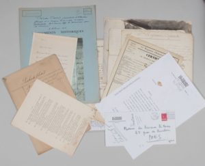 - Beau certificat de la Société des Amis de la Liberté et de l'Egalité établie à Séguret (1792, cachet de cire, signatures et vignette), certificat de présence sous les drapeaux (Avignon, 1844), certificat militaire (Avignon, an 4), bordereau d'envoi de la Société archéologique du Midi de la France, procuration pour le citoyen Escoffier (an 2), gouache du peintre Albert Lepreux (1888-1959) représentant la chartreuse de Villeneuve-lès-Avignon (29 x 21 cm).