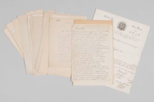 - 47 lettres de personnalités natives de Vendée : Edmond Biré (belle correspondance littéraire de 35 lettres, plus de 100 pp.). Emile Faguet (10 lettres). Francis Éon (poème + lettre + bulletin de souscription pour son premier recueil La Promeneuse + petite affichette).