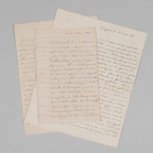 - Lettre adressée à Malmont de Curvieu alors en poste au Brésil. Paris, 23 mai 1828. 3 pp. in-4. Adresse au dos. Evocation de leurs voyages respectifs.