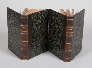FABRE Augustin. JEAN HENRI FABRE L'ENTOMOLOGISTE RACONTÉ PAR LUI - MÊME (1823 - 1910). LYON - PARIS, EMMANUEL VITTE, s. d. Deux volumes, petit in-8, de XIII pp., 224 pp. - puis de la p. 225 à la p. 528, (1) f., demi-reliures de l'époque en basane bronze. Dos à faux nerfs décorés de filets dorés et portant les titres dorés. Bon exemplaire en deux volumes et pagination continue. Avec des portraits de J. H. Fabre.