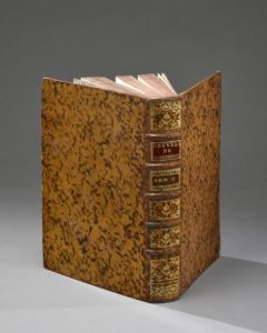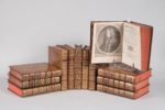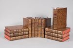 AGUESSEAU Le Chancelier D' OEUVRES. PARIS, CHEZ LES LIBRAIRES ASSOCIÉS, 1759 -1784. Douze volumes, in-4, pleines reliures de l'époque en veau moucheté. Dos à 5 nerfs cloisonnés, fleuronnés et dorés portant les pièces de titre en maroquin rouge et de tomaison en maroquin rouge puis vert pour les cinq derniers, tranches rouges. Très bel exemplaire sans le volume XIII et dernier.