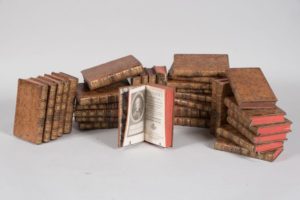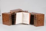 CATROU & ROUILLE HISTOIRE ROMAINE, depuis la fondation de Rome. Avec des notes historiques, géographiques & critiques ; des gravures en taille-douce ; des cartes géographiques & plusieurs médailles authentiques. PARIS, ROLLIN - DELESPINE - COIGNARD, 1725 - 1748. Vingt et un volumes, in-4, pleines reliures de l'époque en veau moucheté. Dos à 5 nerfs cloisonnés, fleuronnés et dorés portant les pièces de titre en maroquin rouge, tranches rouges. Bel exemplaire sauf le dernier volume qui a reçu une mouillure sur le premier plat entraînant le décollement de la peau de ce plat et une mouillure intérieure jusqu'à la page X. Cachet ex-libris de l'époque d'un couvent lyonnais. Vingt volumes en très bel état complets de leurs gravures et cartes.