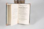 HIPPOCRATE. FOES - GARDEIL. TRADUCTION DES OEUVRES MÉDICALES. Sur le texte Grec, d'après l'édition de Foës. TOULOUSE, FAGES - MEILHAC, 1801. Quatre volumes, in-8, de 450 pp., (1) f. - 528 pp. - 438 pp., (1) f., 556 pp., (1) f., demi-reliures de l'époque en basane bronze. Dos lisses très ornés et dorés portant les titres dorés, tranches jaspées. Coins émoussés. Bel et rare exemplaire.