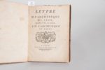 [MALVIN DE MONTAZET Antoine de. LETTRE DE L'ARCHEVÊQUE DE LYON, PRIMAT DE FRANCE, A L'ARCHEVÊQUE DE PARIS. LYON, VALFRAY, 1760. Un volume, in-4, titre, (4) ff, 168 pp., pleine reliure de l'époque en basane moucheté. Dos à 5 nerfs cloisonné, fleuronné et doré portant une pièce de titre en maroquin rouge, tranches rouges. Usures du temps. Cet ouvrage devait mettre fin au double scandale provoqué par l'affaire des Hospitalières du faubourg Saint Michel à Paris. Mais l'Archevêque de Lyon fut accusé de favoriser et de perpétuer le Jansénisme.