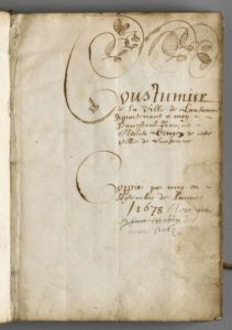 MANUSCRIT. COUSTUMIER (sic) DE LA VILLE DE LAUSANNE APPARTENANT A MOI JEAN PAUL FRANÇOIS MERCIER …