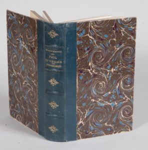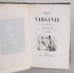BERNARDIN DE SAINT - PIERRE. PAUL ET VIRGINIE. Suivi de La chaumière Indienne. Précédé d'une notice historique sur Bernardin de Saint - Pierre par M. C. A. Sainte - Beuve. PARIS, FURNE, 1854. Un volume, grand in-8, de XL pp., 330 pp., (1) f., demi-reliure de l'époque en basane bleu. Dos à 4 nerfs fleuronné et doré portant le titre doré. Seulement quelques rousseurs ou piqûres éparses. Bon exemplaire. Portrait, illustrations dans ou hors texte, dont une carte en couleurs.