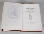 BRILLAT SAVARIN. PHYSIOLOGIE DU GOÛT. Précédé d'une notice par Alphonse Karr. Dessins de Bertall. PARIS, FURNE & Cie, 1864. Un volume, grand in-8, de (3) ff., 459 pp., (1) p., demi-reliure à coins de l'époque en chagrin rouge. Dos à 4 nerfs décoré et doré portant le titre doré, tête dorée. Coins frottés. Édition recherchée pour les nombreuses illustrations de Bertall.