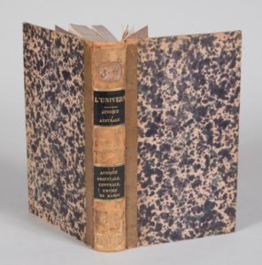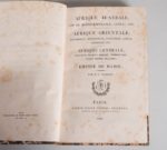 HOEFER Ferdinand. AFRIQUE AUSTRALE, Cap de Bonne - Espérance, Congo, etc. - AFRIQUE ORIENTALE, Mozambique, Monomotapa, Zanguebar, Gallas, Kordofan, etc. - AFRIQUE CENTRALE, Darfour, Soudan, Bornou, Tombouctou, Grand Désert de Sahra. - EMPIRE DE MAROC. PARIS, FIRMIN DIDOT FRÈRES, 1848. Un volume, in-8, de (2) ff., 498 pp., demi-reliure de l'époque en basane marron. Dos lisse orné et doré avec deux pièces de titre en basane noire. Dos uniformément éclairci portant une étiquette ancienne de bibliothèque, quelques rousseurs. 24 planches hors texte, une carte dépliante, texte sur deux colonnes.