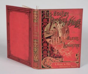 LEMAISTRE Alexis. LES ÉCOLES PROFESSIONNELLES. TOURS, MAME & FILS, 1898. Un volume, grand in-8, de 400 pp., (1) f., cartonnage éditeur habillé de percaline rouge. Titre au dos et en noir et or dans un décor personnalisé sur le premier plat, tranches dorées. Bon exemplaire. Nombreuses illustrations.