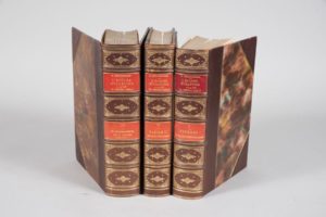 SCHLUMBERGERLA Gustave. L'ÉPOPÉE BYZANTINE A LA FIN DU DIXIÈME SIÈCLE. Guerres contre les Russes - les Arabes - les Allemands - les Bulgares - luttes civiles contre les deux Bardas. Jean Tzimiscès - Les jeunes années de Basile II Le Tueur de Bulgares (969 - 989). PARIS, HACHETTE & Cie, 1896 - 1905. Trois forts volumes, grand in-8, demi-reliures à coins de l'époque en chagrin marron. Dos à 5 nerfs très ornés et dorés portant les pièces de titre et de tomaison en maroquin rouge, filets dorés sur les plats, têtes dorées, couvertures et dos conservés pour les deux derniers volumes. Ouvrage fort rare avec de nombreuses illustrations, dans ou hors texte, une carte en couleurs.