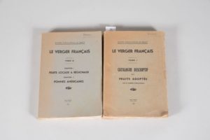 SOCIÉTÉ POMOLOGIQUE DE FRANCE. LE VERGER FRANÇAIS - Catalogue descriptif des fruits adoptés par le Congrée Pomologique. KYON - PARIS, ARNAUD, 1947 - 1948. Deux volumes, grand in-8, brochés de 561 pp. - 576 pp., couvertures (un peu fanées, petits accrocs) imprimées. Le tome II n'a pas été lu : feuilles non coupées. Comporte la reproduction de tous les fruits décrits.