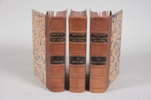 STEYERT André. NOUVELLE HISTOIRE DE LYON. Et des provinces de Lyonnais - Forez - Beaujolais - Franc-Lyonnais et Dombes. LYON, BERNOUX ET CUMIN, 1895. Trois volumes, in-4, de (4) ff., 613 pp., (3) ff., 668 pp., (1) f., (3) ff., 666 pp., (1) f., XXIII pp., Demi-reliures de l'époque en chagrin marron. Dos à 5 nerfs portant les pièces de titre et de tomaison en maroquin bronze, têtes rouges. Très légers frottements sur les dos. Bel exemplaire de l'un des ouvrages les plus recherchés sur l'histoire de Lyon et de sa région.