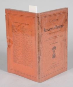 [UN PHILARMÈNE]. LA VÉRITÉ SUR LES MASSACRES D'ARMÉNIE. Documents nouveaux ou peu connus - Rapports de témoins oculaires - Correspondances particulières - Extraits de journaux. PARIS, STOCK, 1896. Un volume, in-8, broché de 128 pp., couverture imprimée. Cernes de mouillure sur la couverture et la marge de quelques feuillets. Feuilles non coupées. Document rare.