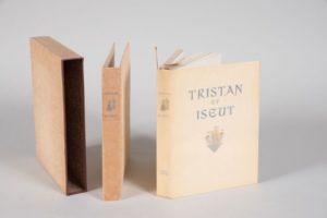 CHAMPION Pierre - Jean TRAYNIER. LE ROMAN DE TRISTAN ET ISEUT. PARIS, AUX ÉDITIONS TERRES LATINES, 1947. Un volume, in-8, broché, couverture rempliée imprimée et illustrée en couleurs, dans un double emboîtage de l'éditeur. Bon exemplaire. Tirage numéroté limité à 2000 exemplaires. L'un des 1950 sur Alfa contenant l'état définitif des illustrations.
