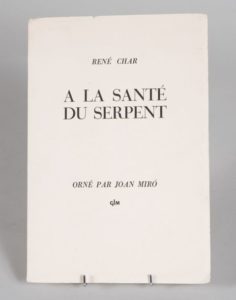 CHAR René - Joan MIRO A LA SANTÉ DU SERPENT. G. L. M., 6 rue Huyghens PARIS, 1954. Un volume, …
