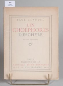 CLAUDEL Paul. LES CHOÉPHORES D'ESCHYLE. PARIS, ÉDITIONS DE LA NOUVELLE REVUE FRANÇAISE, 1920. …