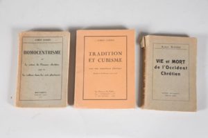 GLEIZES Albert. TRADITION ET CUBISME. Vers une conscience plastique. Articles et Conférences 1912 - 1924. PARIS, AUX ÉDITIONS LA CIBLE chez POVOLOZKY & Cie, 1927. Un volume, petit in-8, broché de 224 pp., (2) ff., couverture imprimée. Seulement quelques mots soulignés au crayon à papier et quelques piqûres sur les tranches. JOINT : A. GLEIZES. VIE ET MORT DE L'OCCIDENT CHRÉTIEN. ÉDITIONS MOLY - SABATA, SABLONS, s. d. Un volume, in12, broché de 220 pp., (1) f., seulement un accroc au dos.