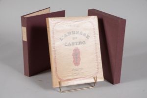 STENDHAL - LEROY Maurice. L'ABESSE DE CASTRO. PARIS, ÉDITIONS ALBERT, 1943. Un volume, grand in-8, en feuilles sous chemise rempliée et double emboîtage de l'éditeur. Bon exemplaire. Illustré par Maurice Leroy de 25 compositions originales en couleurs.