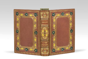BAUDU (René). — Agora. — Paris, pour le compte des auteurs, 1925. — In-8, maroquin rouge orangé, janséniste, doublure de maroquin vert serti d’un filet doré, gardes de moire verte, tranches dorées, couverture et dos, chemise...