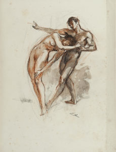 Tirage à 33 exemplaires sur grand papier, celui-ci un des 7 sur japon impérial, avec une suite en noir, un croquis original avec envoi à Madame Barbey de Jumilhac (ex-libris) et UNE AQUARELLE ORIGINALE.
