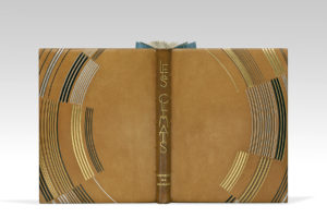 FLAUBERT (Gustave). — Salammbô. — Paris, A. et F. Ferroud, 1900. — 2 volumes grand in-8, maroquin orange, janséniste, encadrement intérieur orné d’une bordure noire, filet et fleuron aux angles, doublure et gardes de moire rouge,...