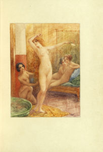 filets dorés, encadrement intérieur orné de filets dorés, doublure et gardes de soie brochée rose, tranches dorées sur témoins, couverture, étui (Mercier sr de Cuzin).