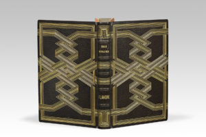 maroquin ocre, les cercles de même, listel fauve en entredeux, rappel au dos, tête dorée, non rogné, filet sur les coupes, couverture et dos, étui (G. Levitzky).