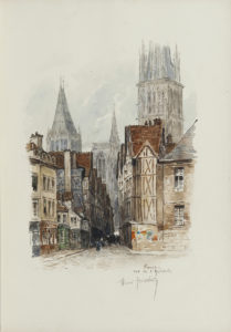 couverture et dos, chemise de papier ornée au dos d’une aquarelle, étui (David 1912).