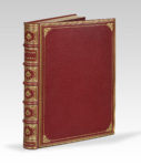 Solacroup, 1899. — In-4, maroquin aubergine, triple filet dont un perlé en encadrement, dos orné de même, encadrement intérieur orné d’une frise de feuilles vertes, listel de maroquin orange, doublure et gardes de moire bordeaux, tranches dorées sur témoins, chemise demi-maroquin, étui (Ch. Septier).