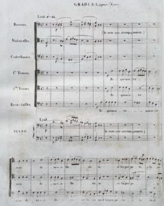 Édition originale de la partition d’orchestre de cette œuvre pour « Voix d’hommes avec accompagnement à grand Orchestre ». Selon Marc Honegger, Cherubini aurait composé ce Requiem pour ses propres funérailles. Gravure un peu faible pour la page de titre, second plat défraichi.