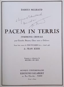 Darius MILHAUD (1892-1974) — Pacem in Terris. Symphonie chorale pour Contralto, Baryton, Chœur mixte et Orchestre. Texte latin extrait de l’Encyclique du 11 avril 1963 de Jean XXIII.