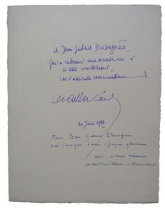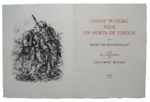 44. [GUERRE 1914-1918]. MONTHERLANT (Henry de). Chant Funèbre pour les Morts de Verdun. Avec des lithographies de Luc-Albert Moreau. Paris, s. n. (Daragnès), 1936. In-4, en ff., chemise et étui de l’éditeur. 152-(3) pp. Illustré de lithographies dans le texte et à pleine page. Bon exemplaire sans rousseurs. Ex-libris (monogramme) : Daragnès. Ouvrage tiré à 100 ex. numérotés sur Arches et 20 ex. de collaborateurs dont celui-ci, enrichi d’une suite complète des lithographies sur Japon, n° VI réservé pour Monsieur Daragnès, avec un double envoi de Montherlant et de Luc-Albert Moreau à Jean-Gabriel Daragnès, éditeur de l’ouvrage, en page de garde.
