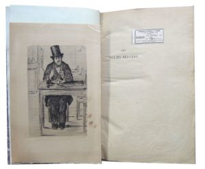 49. HUYSMANS (K.-J.). Croquis Parisiens. Épreuves. 1886. In-8, reliure à la Bradel demi-peau retournée à coins blanche (un peu salie), fleuron doré au dos, date et initiales JM [ Jules Marsan] en pied. 166 pp. Sans les faux-titre, titre et table (joints en photocopie).Témoins conservés. Est jointe une eau-forte de Rafaelli (publiée dans l’édition originale des Croquis Parisiens, Henri Vaton, 1880, p. 85). Etiquette de l’imprimerie Lahure marquée Première et annotée : 31 déc. M. Vanier. Provenance : Bibliothèque Jules Marsan.