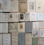 54. LITTÉRATURE XIXe siècle. Réunion de volumes, certains dépareillés ou en état moyen, dont : • ANONYME. Le Nouveau Secrétaire de la Cour de France. Paris, Moronval, 1832. In-12, broché. Couverture d’attente. Frontispice, (2)-xxxvi-140 pp. Ff. repliés. • BALZAC (Honoré de). Maximes et Pensées. Paris, Plon, 1852. In-12, reliure demi-percaline chagrinée vert. (4)-209 pp. Qq. rousseurs. • CHÉNIER (Marie-Joseph) sous le pseudonyme de Abbé MAUDUIT. Les Miracles, ou la Grace de Dieu, Conte dévot. Paris, Dabin, An X - 1802. In-8, broché. Couverture d’attente. 32 pp. Rousseurs. Édition originale. • HERVILLY (Ernest d’). Le Grand Saint Antoine de Padoue. 75 illustrations de W. Busch. 3e édition. Paris, Hinrichsen, s. d. In-8, broché. Dos cassé. (2)-68 pp. Qq. rousseurs. • LEROY (Charles). Ramollot au Salon. Eau-forte de Félix Régamey. Paris, Marpon et Flammarion, 1883. In-8, broché. Couverture illustrée. 13 pp. • MAC-NAB. Poèmes Mobiles. Monologues de Mac-Nab avec illustrations de l’auteur et une préface de Coquelin Cadet. Paris, Vanier, 1890. Suivi de : Poèmes Incongrus, suite aux poèmes mobiles, contenant ses nouveaux monologues et dernières chansons. Avec une préface de Voltaire. Paris, Vanier, 1890. In-8, reliure à la Bradel demi-percaline bleue. Couverture et dos conservés. 142-63-(1) pp. • MUSSET (Alfred de). Il ne faut Jurer de Rien. Paris, Revue des deux Mondes, Tome VII, 1er juillet 1836. In-8, broché. 128 pp. 1ère Livraison contenant la pré-originale de la pièce de Musset. Non coupé. • MUSSET (Alfred de). Il faut qu’une Porte soit ouverte ou Fermée. Proverbe. Paris, Charpentier, 1849. In-12, broché. 36 pp. Constellé de rousseurs. • PAUL (Adrien). Les Usuriers. Floueurs et Floués. Dessins par Benassis. Physionomies Parisiennes VIII. Paris, Le Chevalier, 1868. In-12, broché 127-(1) pp. Ill. à pleine page. Éd. originale. Vicaire VI, 639. • PELLOQUET (Théodore). Henry Murger. Photographie par Pierre Petit. Paris, Lib. Nouvelle, 1861. In-12, broché Couverture défraîchie. Frontispice (photo), 35 pp. Qq. rousseurs. • REGNIER (Mathurin). Œuvres avec les commentaires revus, corrigés et augmentés précédées de l’histoire de la satire en France … par M. Viollet le Duc. Paris, Desoer, 1823. In-8, reliure demi-basane fauve. Épidermures. (2)-95-(2) pp. Rousseurs. • [RIVAROL (Claude-François)]. La Prise de l’Hélicon, ou la Guerre des sots, poëme héroï-comique en 4 chants. Paris, Petit, 1823. In-8, broché. Couverture d’attente. 110 pp. Rousseurs. • ROD (Edouard). La Chute de Miss Topsy. Portrait par A. Descaves. Bruxelles Kistemaeckers, 1882. In-12, broché. Frontispice, 174-(1) pp. Édition originale. • SOYÉ (Louis-Raphaël). Le Jocrisse Ministériel. Paris, Gaultier-Laguionie, 1826. In-12, reliure demi-basane. Mors frottés. 219 pp. Qq. rousseurs.