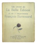 70. BERNOUARD (François). Réunion d’imprimés : • Almanach des Muses. Année 1914. Paris, La Belle Edition, 1914. 12 plaquettes in-24 carré, brochées. Couvertures imprimées de la rose emblématique de l’éditeur dessinée par Paul Iribe en différentes couleurs. (48) pp. par volume. Chaque agenda mensuel (2 jours par page) contient des citations et maximes d’auteurs classiques, une illustration en noir à pleine page, des ff. blancs. Qq. rousseurs. Ensemble en bel état, jamais utilisé. Année complète tirée à 500 ex. numérotés dont celui-ci, sur papier vélin (après 3 japon), illustrée par Véra, Laprade, A. Bernouard, Louis Süe, Drésa, Dunoyer de Segonzac (juin et décembre), Claude Chereau, Ch. Guérin, J.-L. Boussingault, Jaulmes et Bonnard. • On joint : En Escripvant cette Parolle… Étrennes pour l’année 1913 en petits poèmes à forme fixe par Fr. Bernouard ornés de dessins par Marcel Goupy. Se trouve chez Géo Rouard, s. d. 16 pp. illustrées. • Les Livres de la Belle Édition et de l’Imprimerie François Bernouard. Paris, La Belle Edition, s. d. (1920). In-12, broché. Couverture imprimée. Dos bruni. (48) pp. Petit manque dans l’angle d’un f. Catalogue composé d’une préface de Bernouard, petite revue de presse de ses éditions, et catalogue de ses ouvrages illustré de bois gravés en noir à pleine page par Vallotton, Coubine, Marchand, Matisse, Drouart, Tholey, Van Dongen, Laboureur, Fougita (sic), Derain, Iribe… Catalogue peu courant malgré un tirage annoncé à 1500 ex. numérotés sur vergé dont celui-ci. • On joint une plaquette portant le même titre, proposant une liste d’ouvrages imprimés par Bernouard, élaborée par G. A Dassonville pour la librairie La Lanterne (1981). • DASSONVILLE (Gustave Arthur). François Bernouard et la Suppression de la Ponctuation dans le Poème. Bagnolet, La Typographie, s. d. (1976). In-8, en ff. Couverture imprimée et 4 pp. Tirage à 80 ex. numérotés sur vélin d’Arches dont celui-ci.
