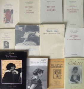 74. COLETTE. Réunion d’ouvrages dont : • Quelques Toiles de Charmy. Quelques Pages de Colette. Paris, Galerie d’Art Ancien et Moderne, s. d. (1921). Grand in-8, broché. Non paginé. Plaquette composée d’un portrait de Colette en frontispice et 6 reproductions en noir de tableaux d’Emilie Charmy accompagné de 4 pp. de texte par Colette. Tirage à 700 ex. celui-ci sur vélin, non justifié. Bel état. • Lettres à Marguerite Moreno. Texte établi et annoté par Claude Pichois. Paris, Flammarion, 1959. Tiré à 210 ex. numérotés dont celui-ci, un des 35 ex. sur vélin pur chiffon d’Arches, papier de tête. • Lettres au petit Corsaire. Texte établi et annoté par Cl. Pichois et Roberte Forbin. Paris, Flammarion, 1963. Tiré à 210 ex. numérotés dont celui-ci, un des 35 ex. sur vélin pur chiffon d’Arches (n° 13), papier de tête. • Lettres de la Vagabonde. Texte établi et annoté par Cl. Pichois et R. Forbin. Paris, Flammarion, 1961. Qq. rousseurs.Tiré à 260 ex. numérotés dont celui-ci, un des 35 ex. sur vélin pur chiffon d’Arches, papier de tête. • Lettres à ses Pairs. Texte établi et annoté par Cl. Pichois et R. Forbin. Paris, Flammarion, 1973. Tiré à 210 ex. numérotés dont celui-ci, un des 115 ex. sur vélin alfa. • Bibliothèque M[aurice] G[oudeket]. Catalogue de Vente. Paris, 1961. • La Vie en Rose. N° spécial. De Claudine à Gaetane par Willy. 1902. Couverture de J. Wély (déchirure restaurée) et second plat par J. Villon.