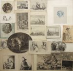 133. ESTAMPES XVIe - XVIIIe s. Réunion d’une cinquantaine d’estampes de format divers, la plupart en retirage, dont : • CALLOT (Jacques, 1592-1635). Vues de la Seine : Le Pont Neuf et la Tour de Nesle Le Louvre et la Tour de Nesle. Eau-forte, 15,8 x 33,5 cm à la cuvette. Marges coupées, déchirure en marge en haut à droite touchant à peine l’illustration.- Réunion des deux estampes illustrant des joutes nautiques, connues sous le nom des « Deux grandes Vues de Paris ». Lieure 667-668. • CALLOT (Jacques, 1592-1635). Ne voila pas de braves messagers / Qui vont errants par pays estrangers. Eau-forte, 12,3 x 23,5 cm à la cuvette. Marges coupées. Estampe de la suite des Bohémiens. • CALLOT (Jacques, 1592-1635). A la fin ces Voleurs infames et perdus / Comme fruits malheureux a cet arbre pendus… Eau-forte, 8,4 x 18,2 cm à la cuvette, mention Israel ex. Cum Privil. Reg. en bas à gauche. Marges coupées à la cuvette. Petit manque dans un angle. D’une série de18 estampes illustrant les souffrances et les crimes de la Guerre de Trente ans, les vers sont de Michel de Marolles. • DÜRER (Albrecht, 1471-1528). Vierge allaitant sur un banc de Gazon. Eau-forte, 11,5 x 7,3 cm. Marges coupées. Copie en contrepartie (avec la date 1503 dans la tablette). • DÜRER (Albrecht, 1471-1528). Le Chevalier, la Mort et le Diable. Eau-forte, 24,3 x 18,4 cm. Marges coupées. Copie sans le S et la date 1513 dans la tablette. • DÜRER (Albrecht, 1471-1528) d’après. Jésus apparaissant à Marie-Madeleine en jardinier. id. n°47 de la Petite Passion. Eau-forte, 12,4 x 9,4 cm. Marges coupées. • DÜRER (Albrecht, 1471-1528) d’après. L’Enlèvement d’Amymone par Triton. Eau-forte, 24,6 x 18,4 cm. Papier brun, marge gauche coupée au ras de la cuvette. Copie en contrepartie, monogramme AD au centre et monogramme IHVE [Johann Ladenspelder ?] en bas à droite. • PICART (Bernard, 1673-1711). Réunion de trois eaux-fortes : Moïse et Pharaon gravée par F. Folkoma datée 1728 (en-tête d’un livre en flamand) Défaitte de la Flotte Espagnolle sur le Slaek, 13e Septembre 1631, datée 1732 figure allégorique gravée par L. Legrand. • SADELER (Johanis, 1550-1600 et Raphael, v. 1560-1630). Solitudo sive Vitae Patrum Eremicolarum. S.l., s. n. Fin XVIe s. Réunion de 22 planches dont le titre et 21 planches gravés d’après les dessins de Martin de Vos (1532-1603), l’ensemble contrecollé sur carton fort. Comporte le titre non numéroté et planches numérotées 2 à 31 (manque 6, 16, 19 à 22, 24, 30) représentant des ermites. État général moyen, une planche avec manques au centre, marges abîmées sur une dizaine de planches. • SWANEVELT (Herman van, 1600-1650). Saint Antoine rencontrant le Satyre. Eau-forte, env. 25 x 32,8 cm à la cuvette. Marges coupées, déchirure avec manque touchant à peine l’illustration en bas à droite. Il s’agit d’une des quatre eaux-fortes illustrant le récit de la visite de Saint Antoine à Saint Paul d’après La Légende dorée. Bartsch 108. • WELTÉ (Gottlieb, v. 1745-1792). Joueurs de Cartes. Eau-forte, 7,6 x 9,8 cm à la cuvette.