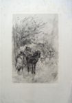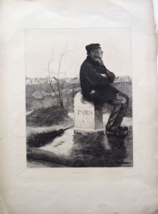 144. ESTAMPES XIXe - XXe s. Réunion d’estampes dont : • BARYE (Antoine Louis, 1795-1875). Un Cerf et un Lynx. 20 x 28,3 cm (feuille), mention Transport et lith. Delaunois, publiée dans Le Musée. • HERVIER (Adolphe, 1818-1879). Réunion de 3 pièces : Intérieur d’église (un angle coupé) Village Normand avec ruine, (Febvre, 1843) Paysanne avec enfant et coq (1847). • LAVIEILLE (Jacques-Adrien, 1818-1862). Réunion de 3 gravures d’après Jean-François Millet. Typ. J. Claye. Env. 15 x 22 cm. Marges recoupées, trous de punaise aux angles. • MORIN (Edmond, 1824-1882). Averse sur le Boulevard (1876). 24 x 16 cm à la cuvette. Tirage sur Chine. • MORIN-JEAN (Jean Morin dit, 1877-1840). Pont sur la rivière. 15 x 22,5 cm au trait. Tirage sur Japon justifié 19/24. • OUVRÉ (Achille, 1872-1951). Réunion de 5 pièces : 3 eaux-fortes de l’ouvrage Hindous au camp anglais (1917). Rousseurs. Bois gravé signé : Portrait d’Anatole France. Burin signé : Au bourreau Gérard la tête de sa victime - H. de Groux. • RAFFAËLLI (J.-F., 1850-1924). Paris 4k1. Gravé par V. Focillon d’après Raffaëlli pour L’Art. Imp. A. Clément. 31 x 24 cm à la cuvette. • TOUSSAINT (Henri, 1849-1911). Entrée de carrière d’après Gustave Courbet. Imp. Cadart. 10,8 x 13 cm au trait de l’image. • On joint une cinquantaine d’estampes, plusieurs tirées d’ouvrages dont 14 illustrations de Monte-Cristo par Tony Johannot et Gavarni.