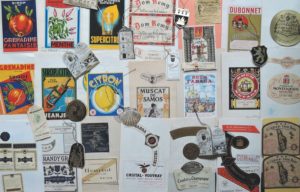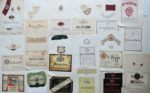 164. ŒNOLOGIE. Importante réunion d’étiquettes de vin : Ensemble réparti en trois chemises : Alsace, Anjou, Aude, Beaujolais, Beaune, Bergerac, Bordeaux, Saint-Emilion, Bourgogne, Saumur-Champigny, Corbières, Corse, Côtes de Provence, Côtes du Rhône… (environ 300 étiquettes) Liqueurs et vins d’apéritif (env. 70) Champagne et mousseux (env. 30) Vins d’Algérie (env. 50) Vins étrangers (env. 15). Étiquettes rassemblées entre les années 1960 et 2000, comprenant parfois, les mêmes étiquettes avec des millésimes différents, contrecollées sur divers morceaux de papier découpés.